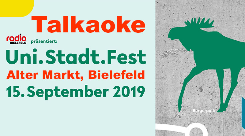 Talkaoke travelled to Bielefeld, Germany for Uni.Stadt.Fest. The table landed in Alter Markt, where we ran a warmup session on Sat 14th Sept 2019 before the main event on the Sunday.