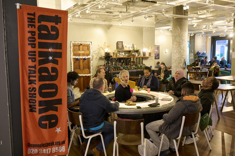 Talkaoke is an interactive talk-show, where you decide on the subjects. Just grab the mic and have your say! Each discussion is a journey from one unexpected subject to another: it can be topical, funny, deep, surreal, and everything in between. The format is simple: the Talkaoke host sits in the middle of a doughnut-shaped table and passes the mic around, inviting contributions and comments from each participant. Talkaoke host stimulates the collective imagination of the participants by expertly linking themes and opposing points of the conversation. Talkaoke is a great way to hear the latest ideas people are excited about and creatively develop new ones.