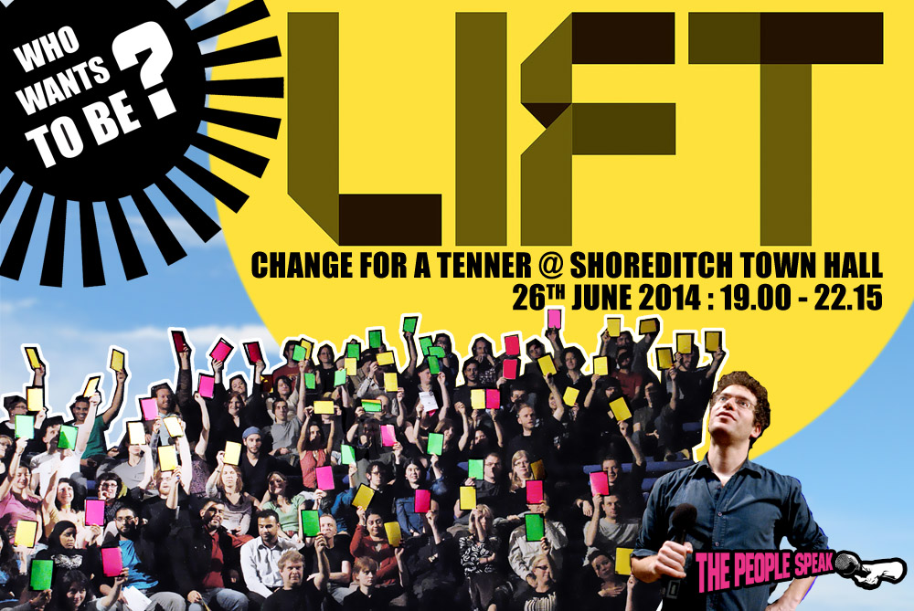 Think you have an idea for change? A new political party, a radical campaign, a revolutionary proposition, a life-changing art project, a new haircut….? Or just enjoy finding out what gobsmackingly brilliant or bonkers things other people want to make happen. Then you want to be at Change for A Tenner finale – a dangerously spontaneous gameshow where the audience has all the answers, makes up all the questions and the rules. We’ll put up the proceeds from the box office for the audience to decide how to spend it – by suggesting ideas, having a raucous debate and voting. Or you might decide to gamble it or destroy it. It’s up to you. If 100 people come then we’ll have £1000 to give away (we’ll throw in the extra quid to make it up from £999)…the more people who come, the more money’s on the table. Organised by Mikey Weinkove and The People Speak who will be present at all of the previous five shows.